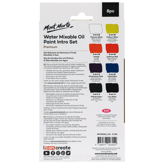 Water Mixable Oil Paint Intro Set Premium 8pc x 18ml (0.6oz)