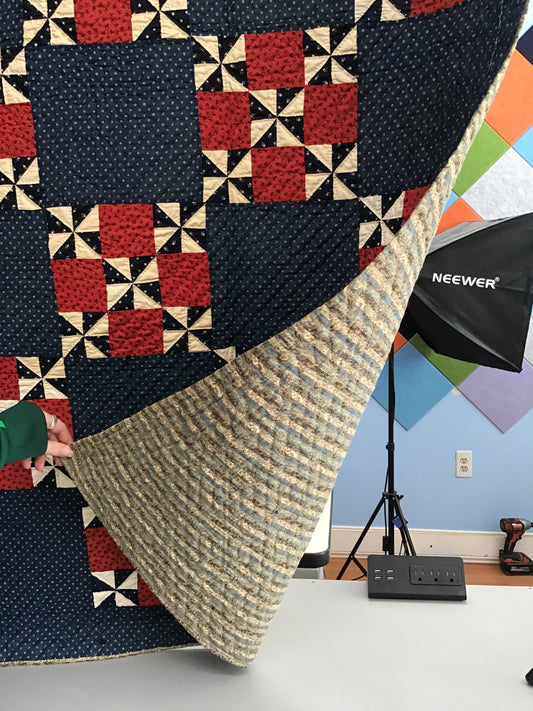 Blue pinwheel with red 9 patch