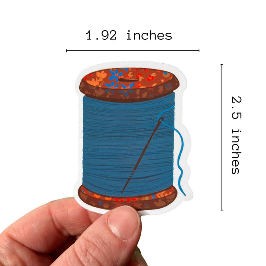 Blue Spool Of Thread Vinyl Stickers, Sewing Quilting Sticker
