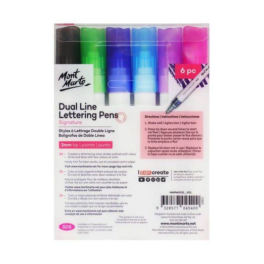 Dual Line Lettering Pens Signature 2mm (0.08in) Tip 6pc
