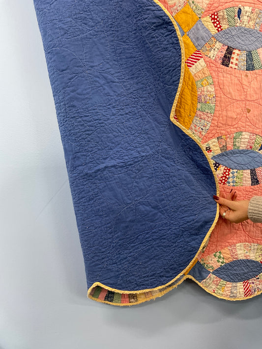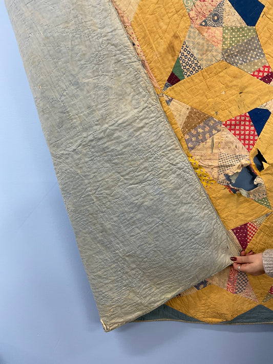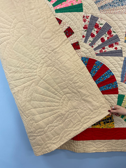 Sold outFan quilt 1960s- 70s 87.5” x 79”
