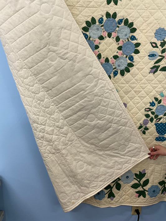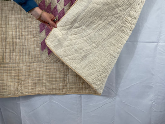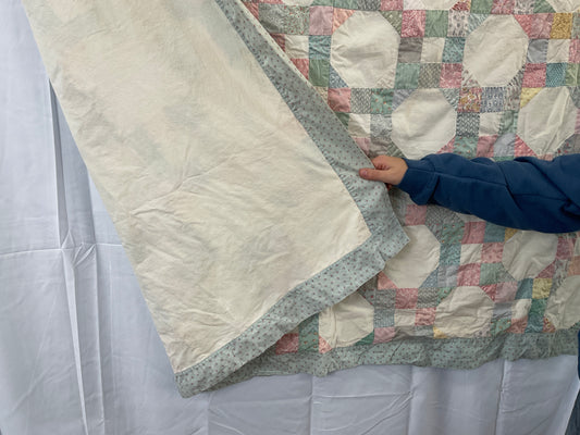 Antique 4 Block Hand Quilted Quilt 63”x76.5