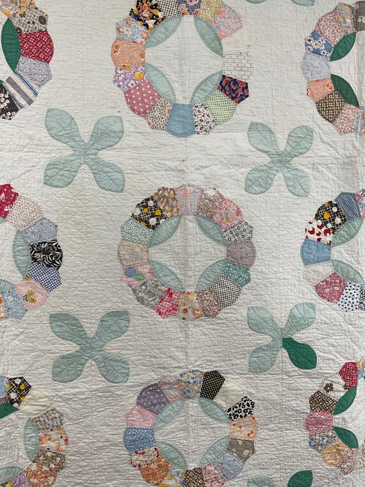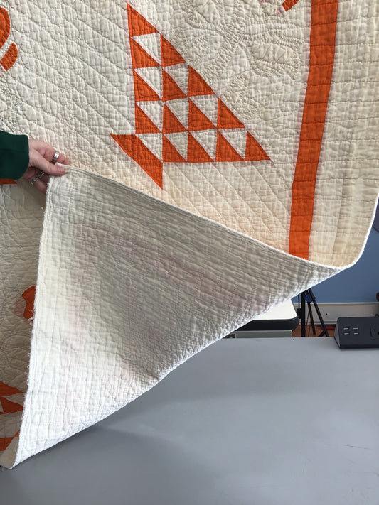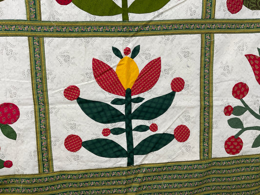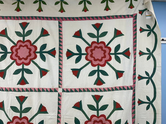 Antique Poppy and Garden Fence applique Quilt 1933 87”x82”