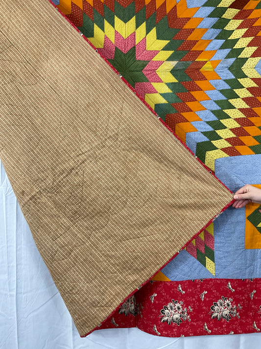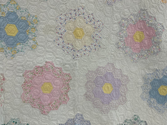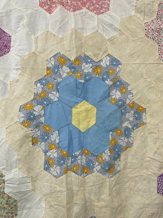 Primitive Antique Grandmother's Garden Quilt Top 72”x80”