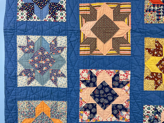 Newer Pieced Cornflower Blue and Colorful Repro 30s Fabrics Quilt