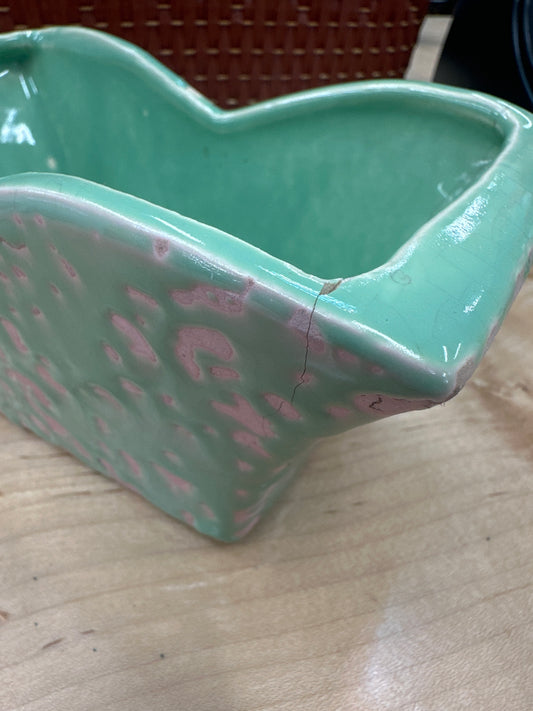Vintage Green White Speckled Ceramic McCoy Pottery Planter