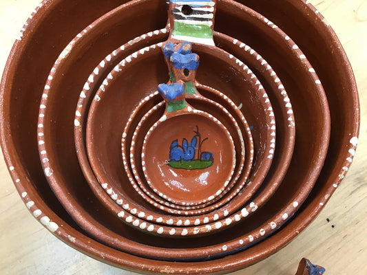Vintage Mexican Set of 7 Nested Handled Bowl Set