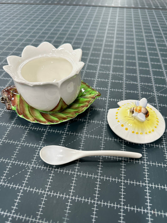 Vintage Lefton Bee Line Sugar Bowl Honey Jam
