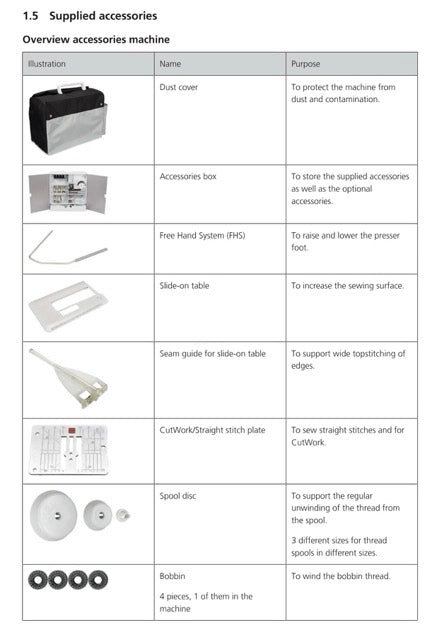 Sewing space to the right of the needle 8.5” BERNINA Dual Feed Y Lower Thread Sensor Y Maximum Stitch Width 9 Start/Stop Button (stitching without foot control) Embroidery Area 15.7" x 5.9" Endless Embroidery Y 2-Point Placement Y Group/Ungroup Y Creative Consultant Embroidery Y