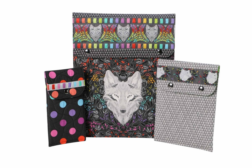 The pattern includes instructions for sleeves in two handy styles (horizontal and vertical), each in three sizes! Each features a flap with a snap closure, making them ideal for life on the go.