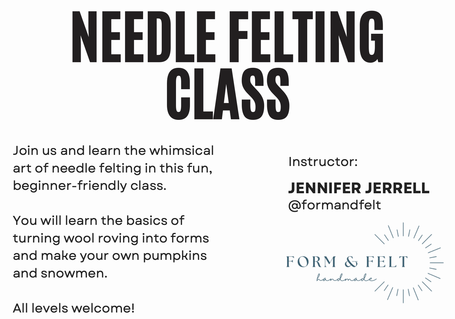 Felted Snowmen and Pumpkins: Introduction to Needle Felting with Jennifer Jerrell of @formandfelt | November 20