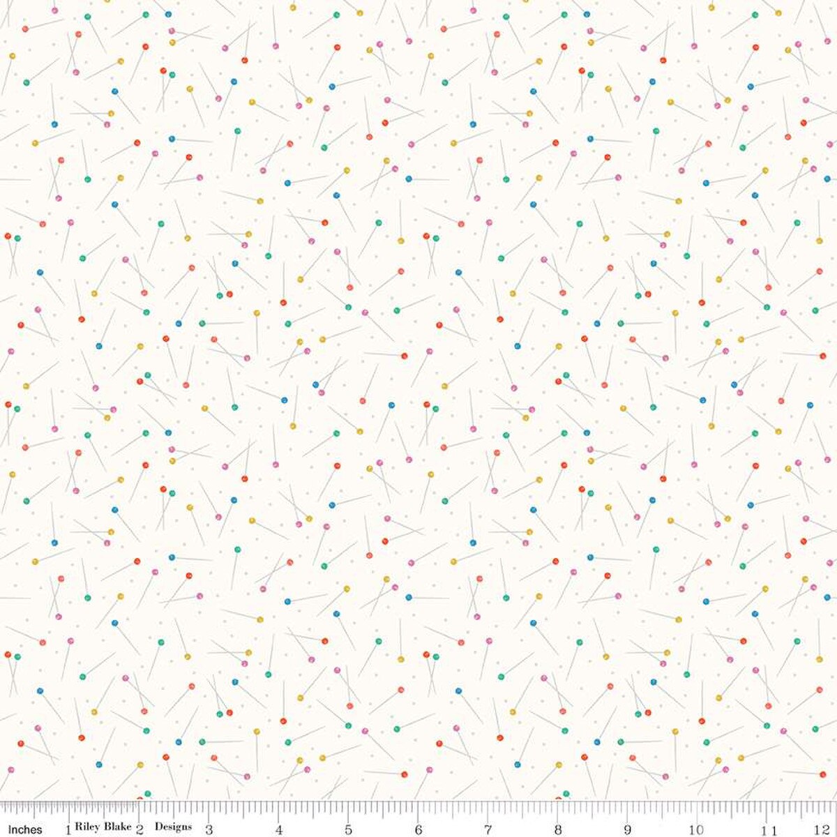 Hand Made by Amber Kemp-Gerstel of Damask Love for Riley Blake Designs is great for quilting, apparel and home decor. This print features tomato pincushions on a dotted background.