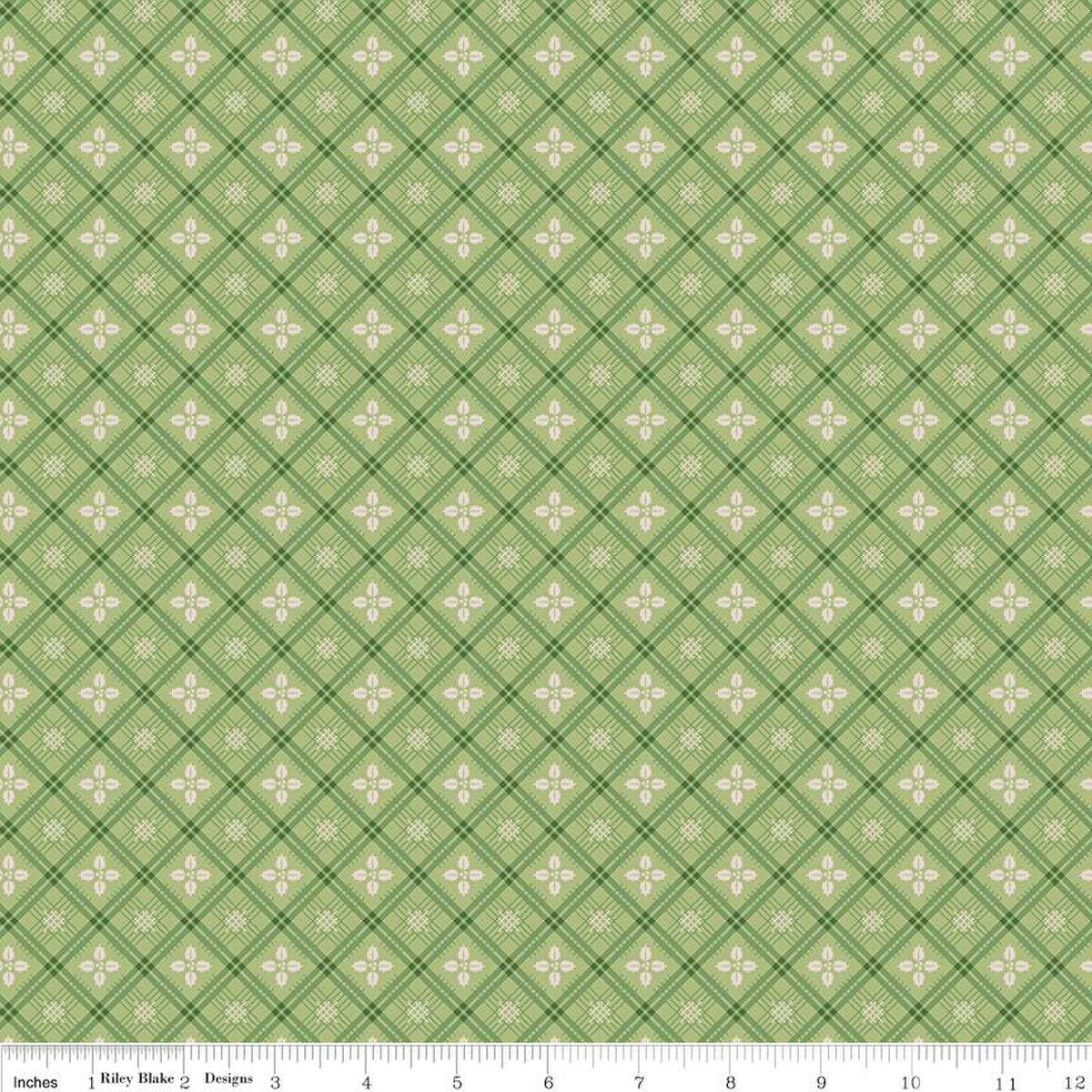Home Town Holiday by Lori Holt of Bee in my Bonnet for Riley Blake Designs is great for quilting, apparel and home decor. This print features a diagonal plaid design with holly leaves.