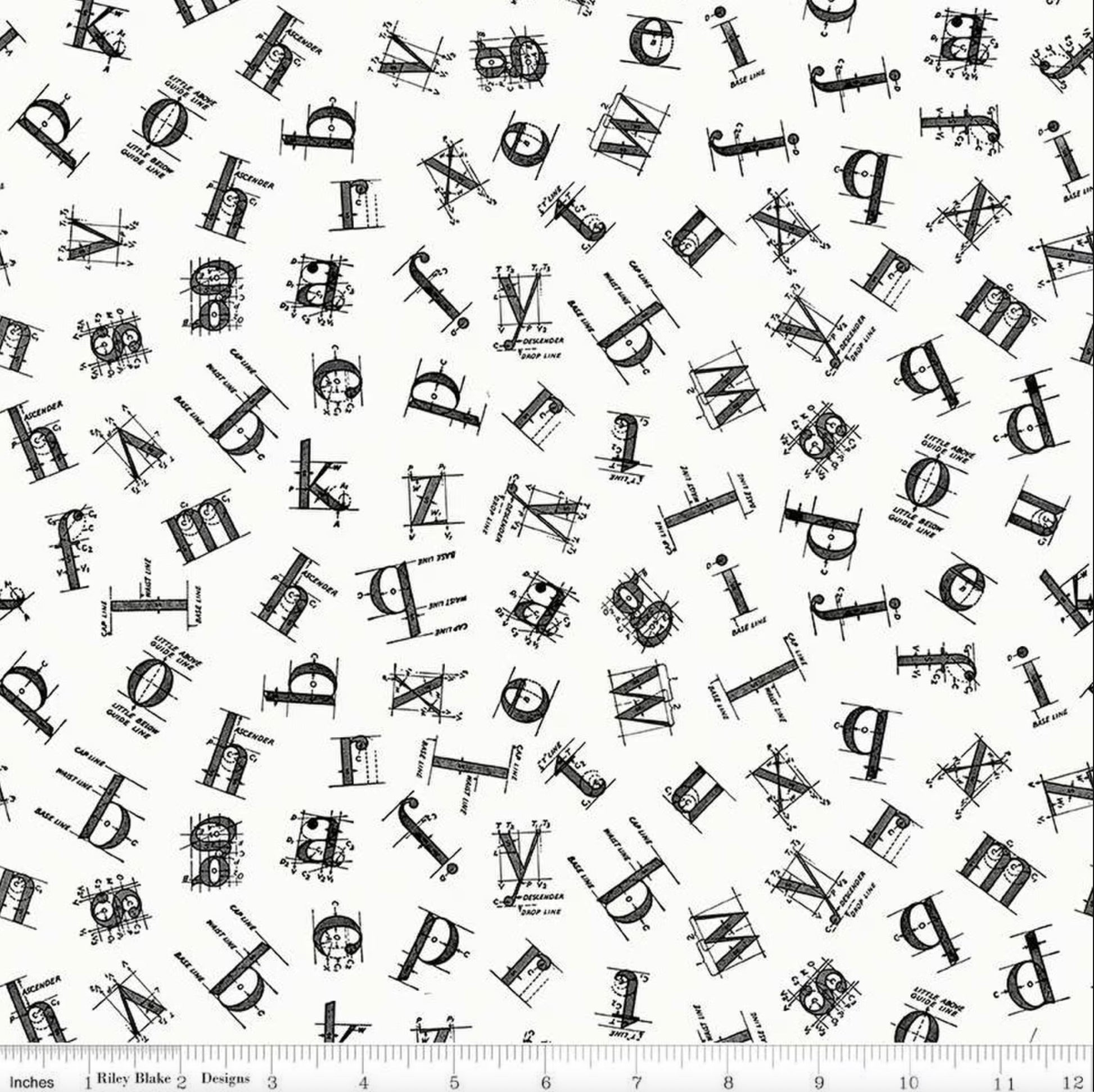 Item Description: Old School by J. Wecker Frisch for Riley Blake Designs is great for quilting, apparel and home decor. This print features vintage letter illustrations.