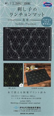 Sashiko Sampler (Placemat) Hana-guruma (Navy) 12.5inx18in (double sheet) Cotton 100% Sashiko Pre-printed cloth (washed-out)