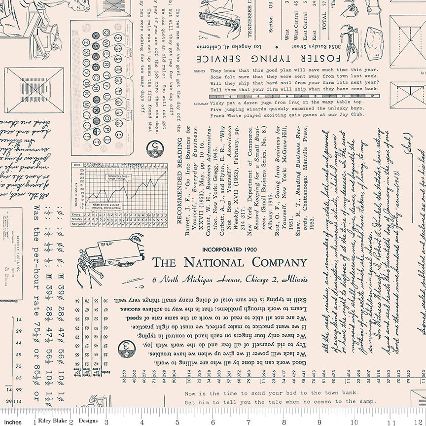 TYPE/ography by Lori Holt of Bee in my Bonnet for Riley Blake Designs is great for quilting, apparel and home decor. This print features vintage typing-themed text and images.