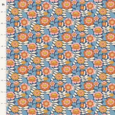 Tilda Fabric's Wallflower collection is designed by Norwegian designer Tone Finnanger. "Wallflower is an ornamental collection loosely inspired by and my somewhat romantic take on design styles popular in the 1960s and 70s." The collection has two distinctive color stories. One is sweet and fresh with vintage reds, greens and pinks with hints of blue and sour yellow. The other is more of a nod to the 1960s and 70s, with caramel, blue, ginger, ochre and thistle tones. The sweet Bellflower blenders complement the main collection perfectly.