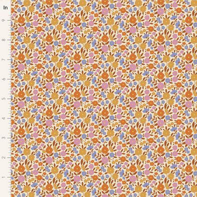 Tilda Fabric's Wallflower collection is designed by Norwegian designer Tone Finnanger. "Wallflower is an ornamental collection loosely inspired by and my somewhat romantic take on design styles popular in the 1960s and 70s." The collection has two distinctive color stories. One is sweet and fresh with vintage reds, greens and pinks with hints of blue and sour yellow. The other is more of a nod to the 1960s and 70s, with caramel, blue, ginger, ochre and thistle tones. The sweet Bellflower blenders complement the main collection perfectly.