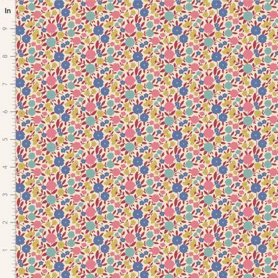 Tilda Fabric's Wallflower collection is designed by Norwegian designer Tone Finnanger. "Wallflower is an ornamental collection loosely inspired by and my somewhat romantic take on design styles popular in the 1960s and 70s." The collection has two distinctive color stories. One is sweet and fresh with vintage reds, greens and pinks with hints of blue and sour yellow. The other is more of a nod to the 1960s and 70s, with caramel, blue, ginger, ochre and thistle tones. The sweet Bellflower blenders complement the main collection perfectly.