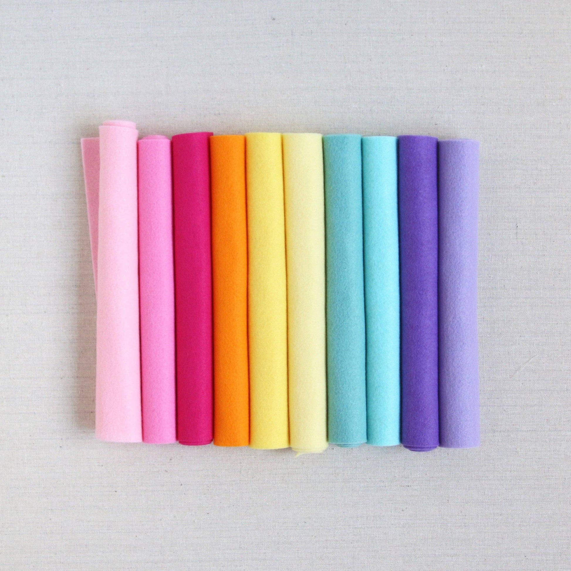 Craft with ease and creativity using wool felt! This versatile textile is perfect for cutting, sewing, stitching, and gluing. Plus, its vibrant colors add a fun touch to any project! 9x12" sheets of coordinating Benzie Design wool blend felt. Benzie Design felt is a blend of 20-35% merino wool with the rest rayon. Merino wool fibers are prized not only for being soft but also strong which make this felt sturdy and resistant to pilling. Grab a pair of scissors and start crafting with a rainbow of colors!